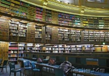 建于1857年拥有许多珍藏书籍的阅览室,原本只提供持有阅览证的人士作研究之用,目前已向一般大众开放,阅览室大厅四周全是书架,两三层楼高,阅览室中央是书桌,围成很多圈,顶部是巨大的穹顶彩绘。